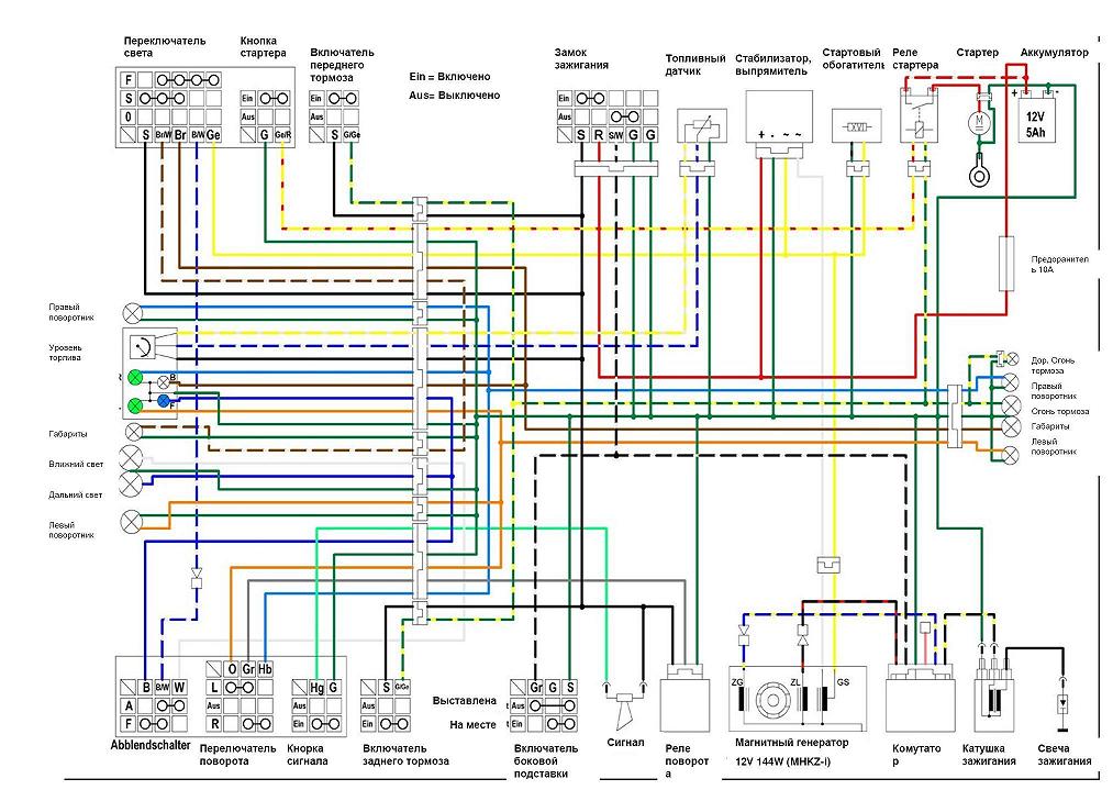 А это электросхема в цветном варианте, подходит для большинства китайских скутеров, сверьте с вашим.