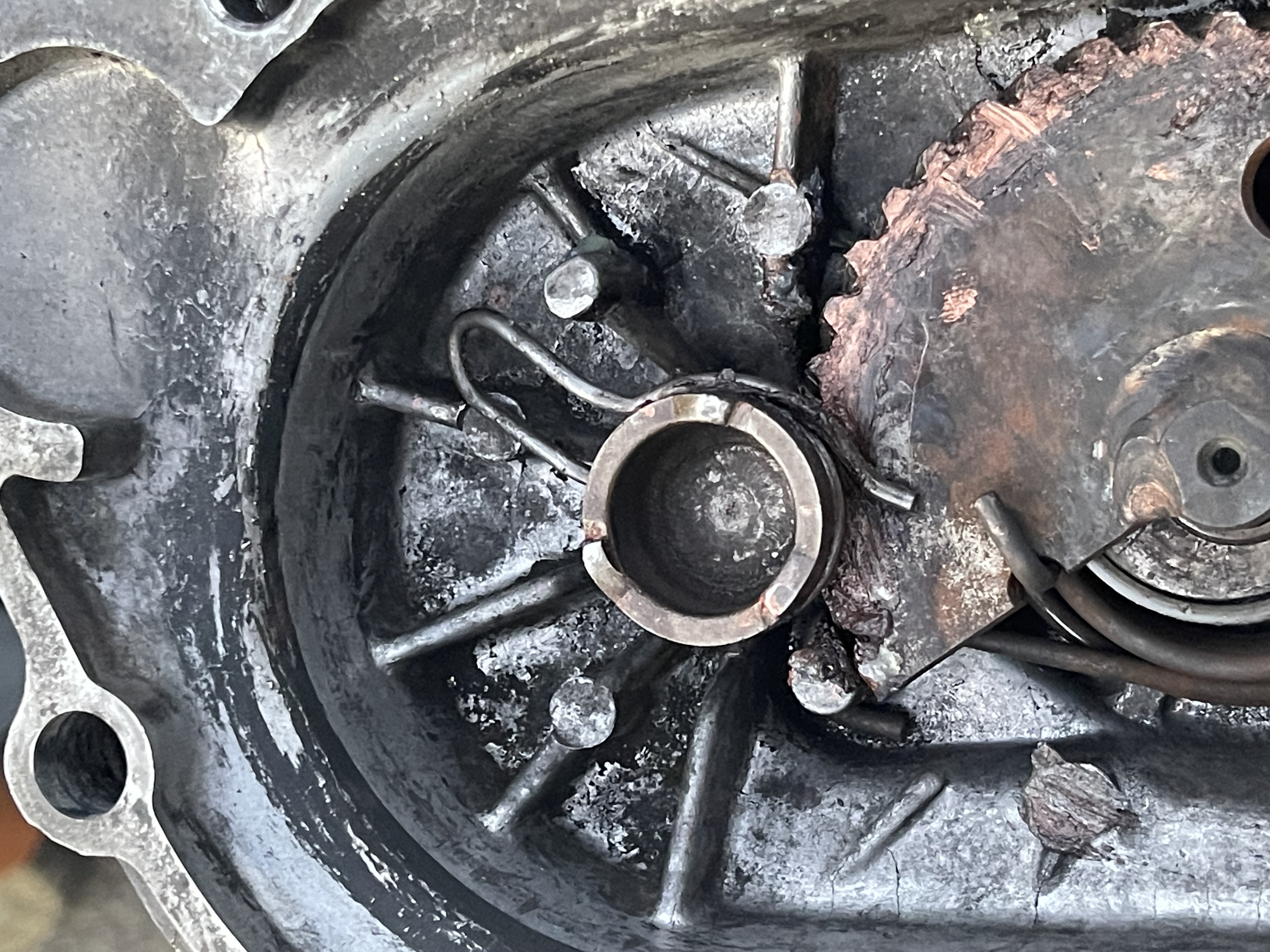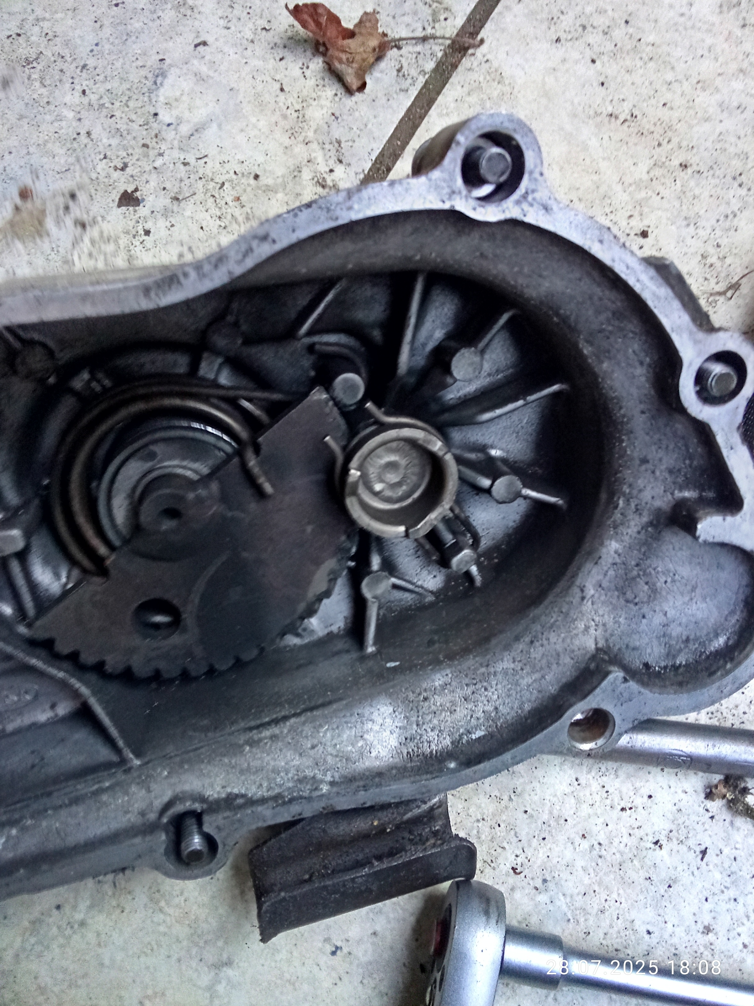 Он пришёл. Приветствую, коллеги. На фото кольцо зачем-то надето выступом-петлёй на штырь. Поэтому оно и слетает с храповика, что закусывается на штыре. Там немного другой принцип выхода-возврата храповика. Кольцо должно висеть свободно, и при вращении храповика в ту или другую сторону сначала немного проворачиваться вместе с ним, а потом упираться выступом то в один штырь, то в другой, подтормаживая вращающийся храповик. Благодаря этому подтормаживанию храповик выходит к коленвалу и возвращается обратно. Попробуйте снять кольцо и подтормаживать храповик пальцами -- сразу станет понятно. Гул в торке обычно от шарикоподшипника. Он вообще не очень долго живёт, так как ему сухо. Можно набить его смазкой, но из-за особых условий работы смазка в нём не удерживается, и вылетает, внутрь торка и наружу. А если весь торк набить смазкой под завязку, до оси, то излишек смазки оттуда вылетит через ш/подшипник на сцепление, ибо уплотнение в нём (красная крышка) давление смазки держать не может. Это особенность конструкции. Надо регулярно перебирать и смазывать торк, хотя бы раз в сезон. Я добавил в новый ш/подшипник вторую крышку-уплотнение, с внутренней стороны, и это помогло -- подшипник уже пару лет не шумит. Насчёт скрежета: надо разбирать. А со стартером, я бы убедился сначала, что на него приходит (или не) напряжение. Если приходит, значит виноват он сам, если не приходит -- звонить провода до разъёма на раме справа, потом - до реле стартера в корме скутера, оттуда - до АКБ. Может, на реле не приходит управляющее напряжение от кнопки "старт" через ручки тормозов. Само японское реле обычно работает десятилетиями.