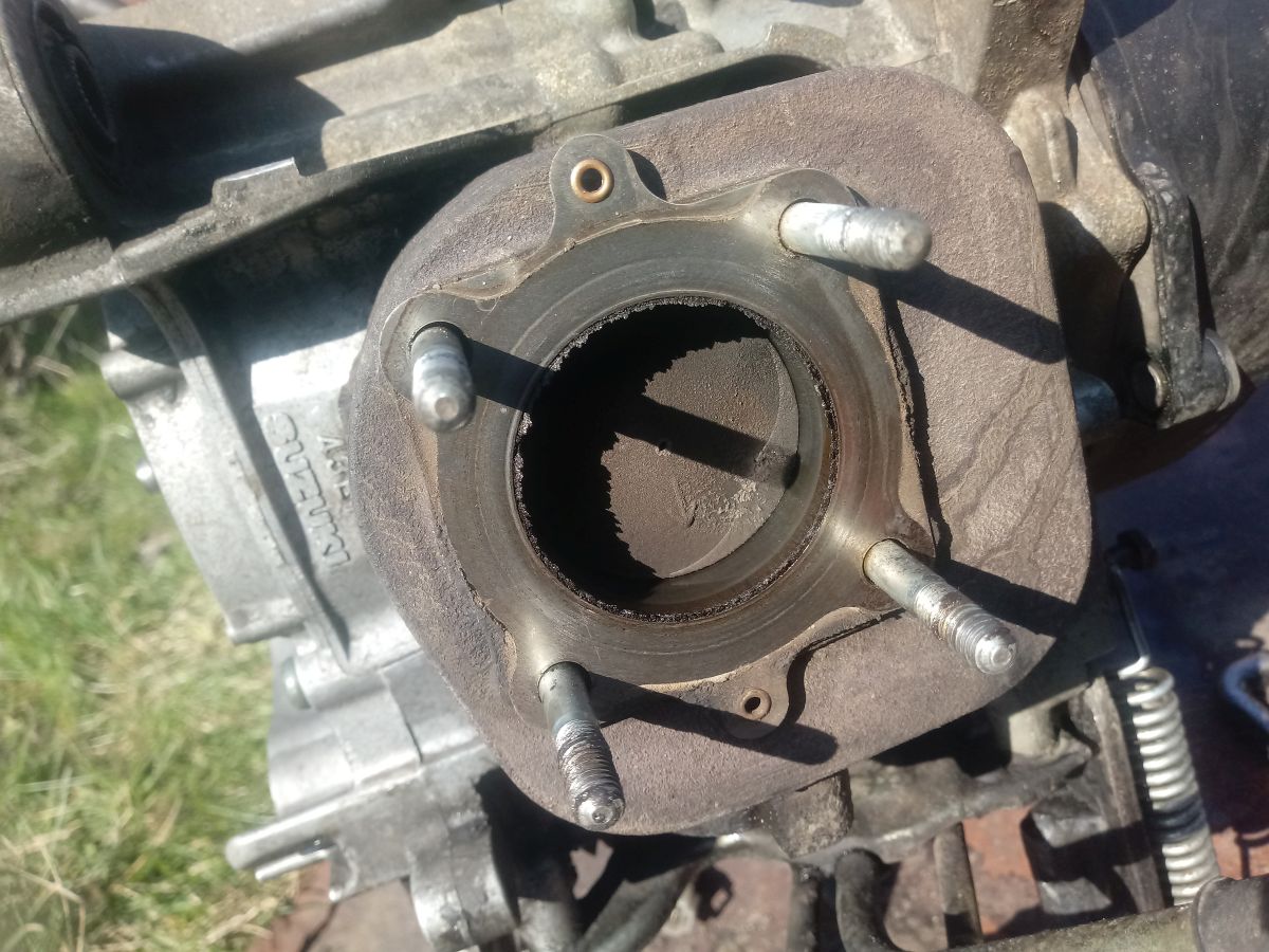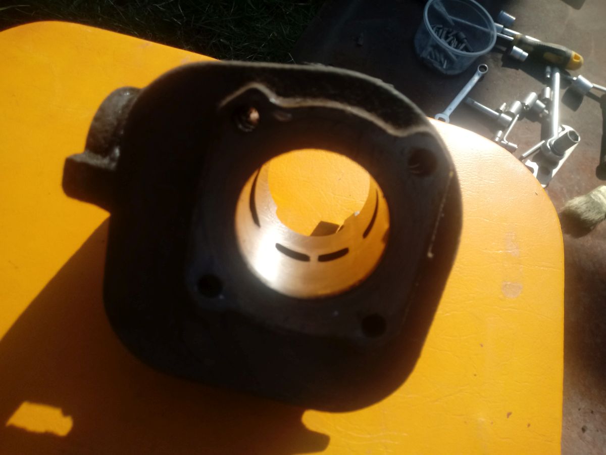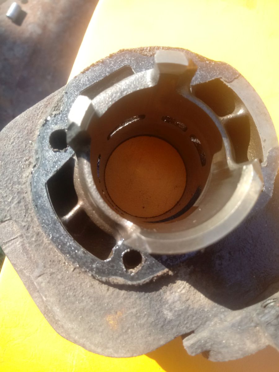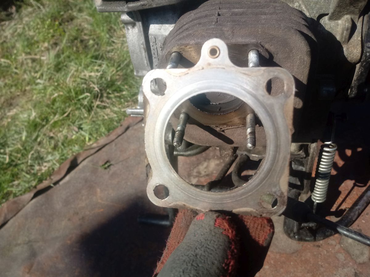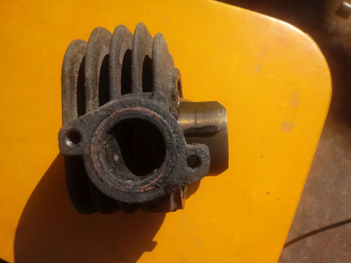 Прокладка між циліндром і картером була дещо пошкоджена і прикипіла до циліндра (див. фото).