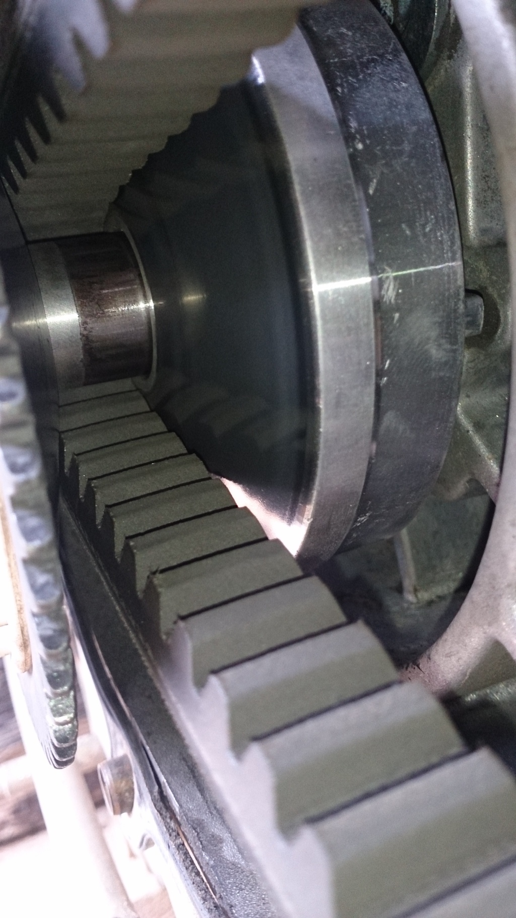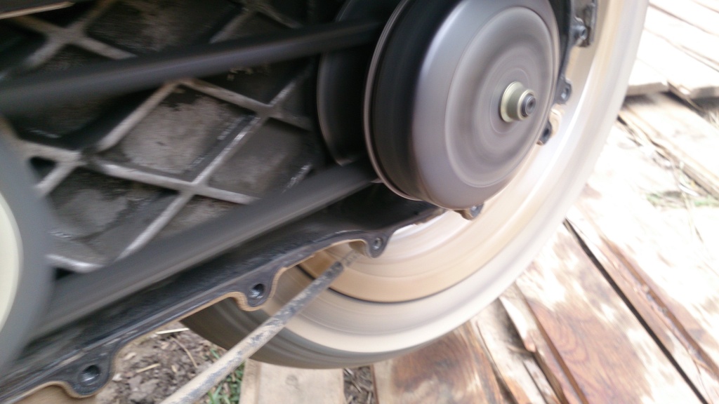 -сделай фото расположения ремня на шкивах... на заглушенном... и на оборотах при вывешанном колесе...