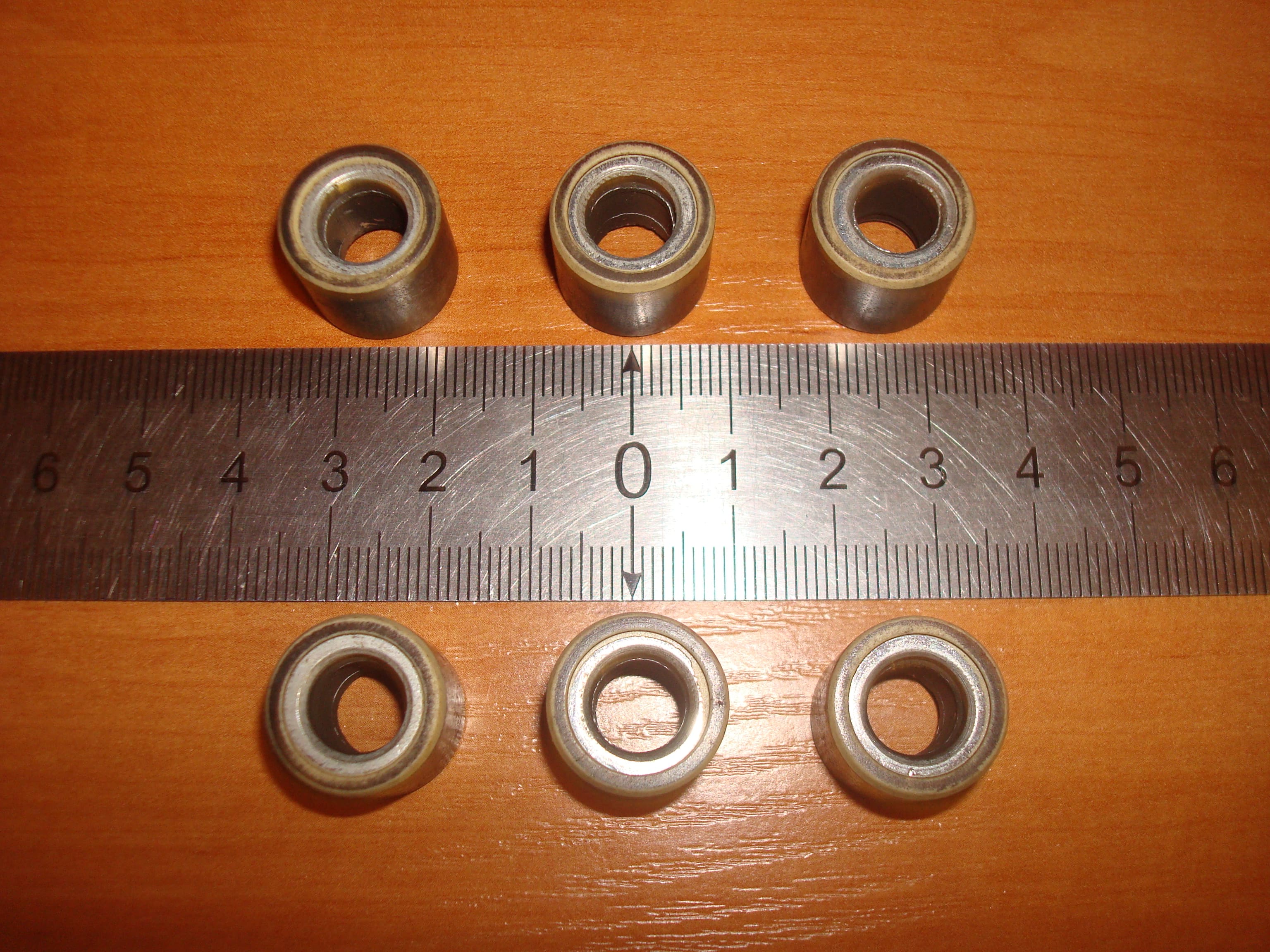 Всем добрый вечер. Как писал ранее, начал кап. обслуживание скутера. Проблем выявлено и исправлено много, но сегодня о "стоковых" роликах. Вес 8,5 гр. (+,-) 0,25 гр.. Внешняя оболочка в идеальном состоянии. У 3-х роликов имеется существенное смещение массы относительно центра. Разница в толщине противоположных стенок разнится до 0,6 мм. Если их "катнуть", двигаются сильными рывками и быстро останавливаются. В установленных новых роликах вышеперечисленные проблемы отсутствуют. Реакция двигателя - значительное уменьшение вибрации.