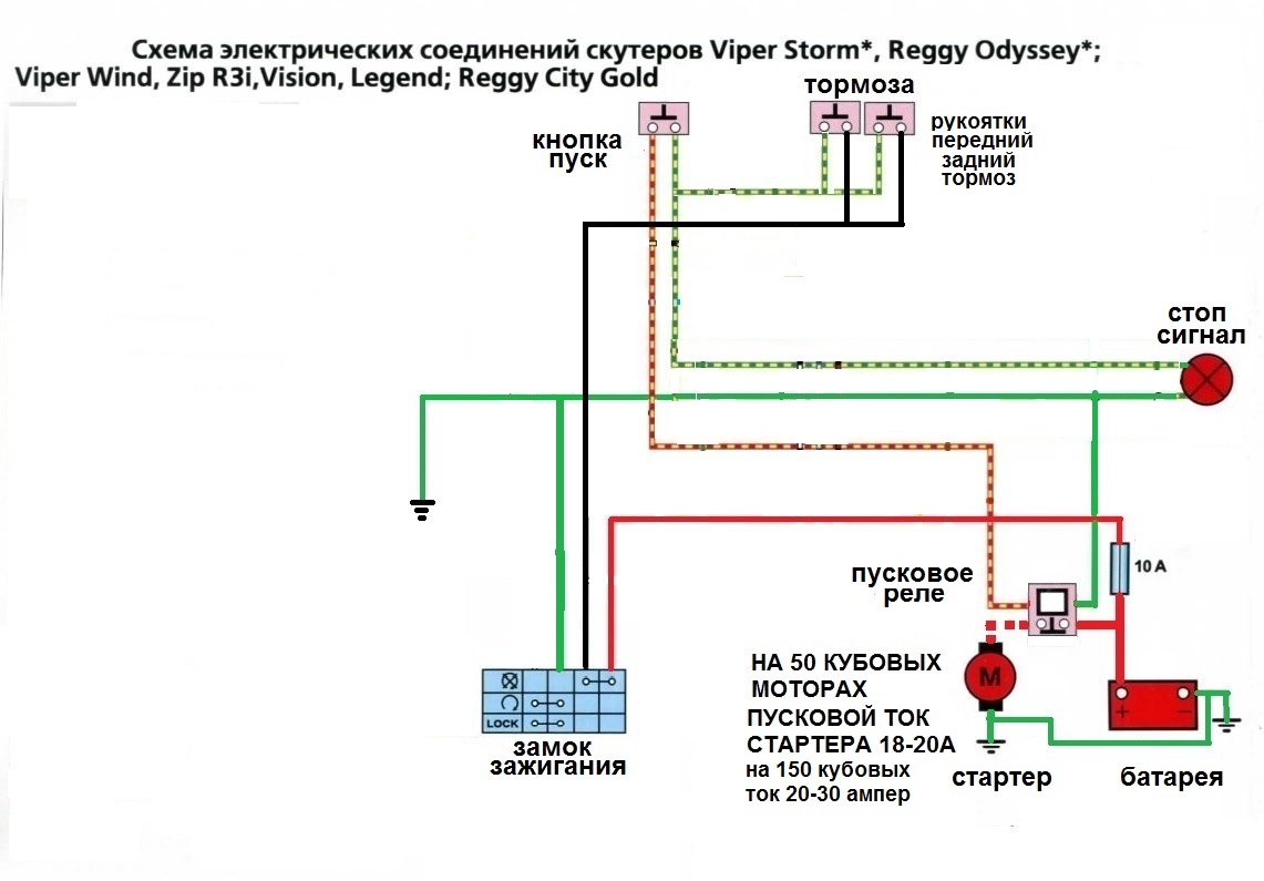 Не заводится скутер с кнопки стартера. Нажимаю на кнопку вообще ничего не происходит как буд то не подается напряжение на реле стартера. Прозвонил провода от кнопки до релюхи все прозванивается обрыва нет. Подключал напрямую релюху к аккумулятору через фишку все работает.