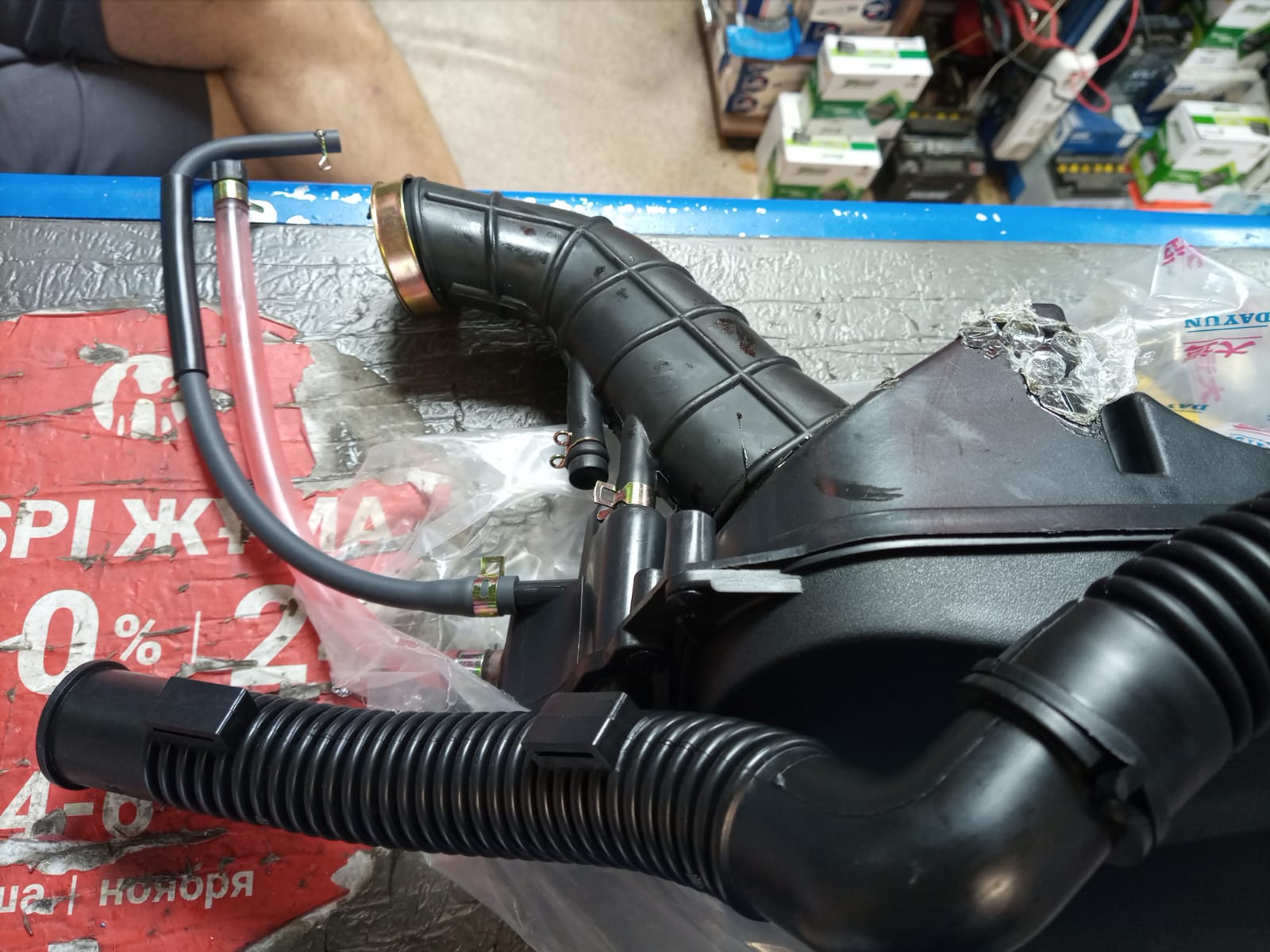 И еще вопрос, у меня сейчас стоит воздушный фильтр, с одной трубкой которая идет в карбюратор, но сам фильтр грязный, в магазине остался воздушный фильтр в сборе только одного типа, но там 2 трубки, одна так же в карбюратор, а вторая куда должна идти? Фото прикрепил там видно 2 трубки.