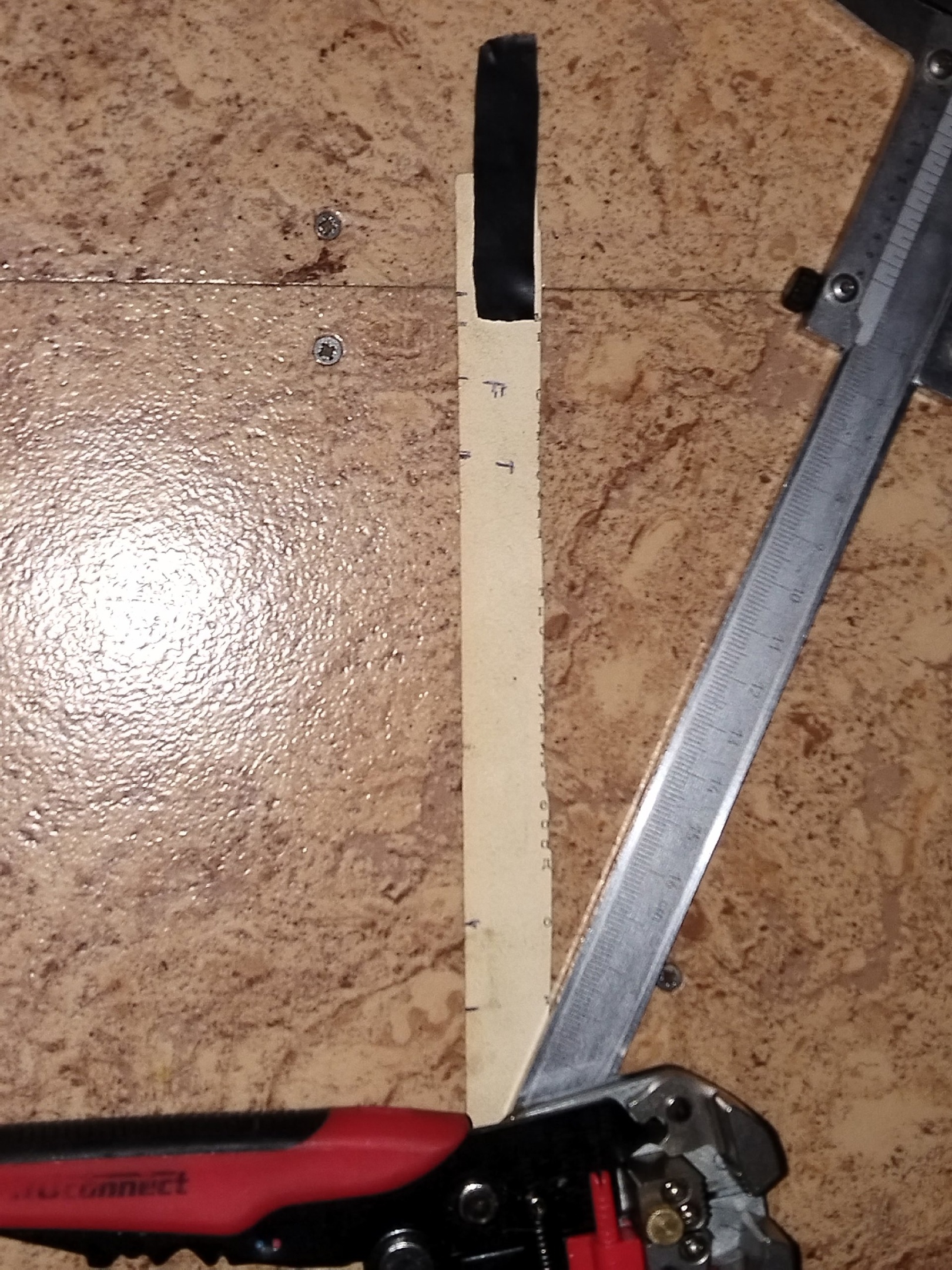 Продолжим ревизию. Прикладываем полоску бумаги, очень аккуратно переносим четыре метки на неё (вышло "криво", - переделываем. бумагу не жалко). На стол и замеры...