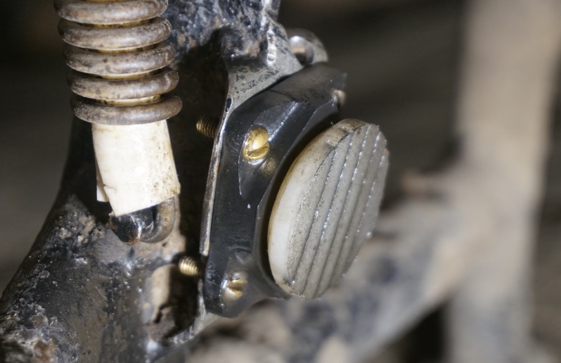 Lead 90 известен малым дорожным просветом и задеванием асфальта лапкой центральной подставки при левом повороте. Замена штатного амортизатора на более длинный (330-340 мм) затруднится тем, что пружина амортизатора упрётся в верхний передний край корпуса воздушного фильтра в выемке, центральная подставка перестанет доставать до земли, а трос газа от карбюратора окажется коротковат. 1) Доработка корпуса воздушного фильтра методом термоформования, при помощи фена и, например, любой аэрозольной банки диаметром 60-70 мм. Место, где пружина амортизатора упирается в эйрбокс (фото 1, обведено синим), постепенно и со вниманием нагревается феном до размягчения. (Здесь опасный момент – нельзя перегревать, чтобы не повредить эйрбокс). И сразу в это место вжимается банка в том же положении, что и упиравшийся амортизатор, и удерживается до отверждения. Японская пластмасса неподатлива, и одного раза может быть недостаточно. Нужно учесть, что теперь снимать с карбюратора эйрбокс станет неудобно - он всё равно будет немного упираться в пружину длинного амортизатора. 2) Удлиняется центральная подставка отрезанием концов её ножек на пару сантиметров, и привариванием более длинных. Ориентировочно, при длине нового амортизатора 330-340 мм, длина подставки от центра пяток до оси шарниров должна составлять 180-190 мм, но это при нормальном, не слишком остром угле между подставкой и полом. Угол исправляется привариванием к старым упорам (фото 2) клиновидных вставок нужной толщины, сделанных, например, из губок большого гаечного ключа, с помощью болгарки. Новые пятки лучше сделать большего размера, чтобы скутер мог стоять не только на твёрдых поверхностях. Но при этом важно, чтобы в убранном положении подставки её левая ножка не задевала картер и тросовый привод заднего тормоза. Зазоры между ними и ножкой лучше сделать с запасом, 10-15 мм. Заодно можно заменить резиновую подушку упора, которым убранная подставка упирается в картер, и сделать накладку из нержавейки толщиной 1,5-2 мм на протёртую подушкой ямку в картере (Фото 3). Подушку можно сделать двухслойную, из резины снизу и капролона. (фото 4) Пара трения нержавейка-капролон проработает годы, и пищать не будет. 3) Удлинение тросового привода шибера карбюратора, примерно на 30-35 мм. Важно, чтобы диаметры новой оболочки и тросика были точно такие, как у заводских, для нормальной работы уплотнений. Как вариант, хорошо подходят оболочка и тросик Shimano для велотормозов, продающиеся метражом. На концы тросика напаиваются трубочки-концевики, снятые с заводского тросика. И оболочка, и тросик делаются длиннее старых строго на одинаковую величину, чтобы не пришлось на ручке газа регулировать длину общего троса, а также привод рычага маслонасоса. Потребует внимания и аккуратности заправка конца тросика в стакан шибера карбюратора, поэтому следует запомнить , как был заправлен старый тросик. Важно, чтобы тросик не задевал дозирующую иглу и её стопор.