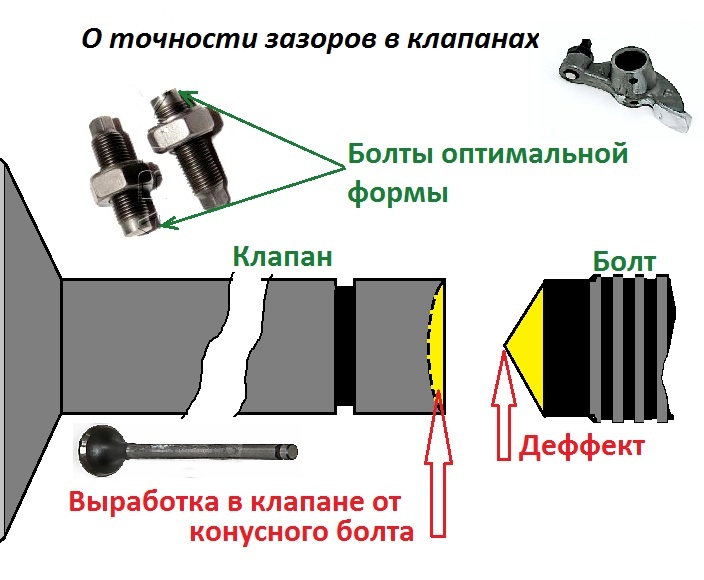 при выставлении зазоров. Регулировочный болт имел остроконечную коническую форму, который при