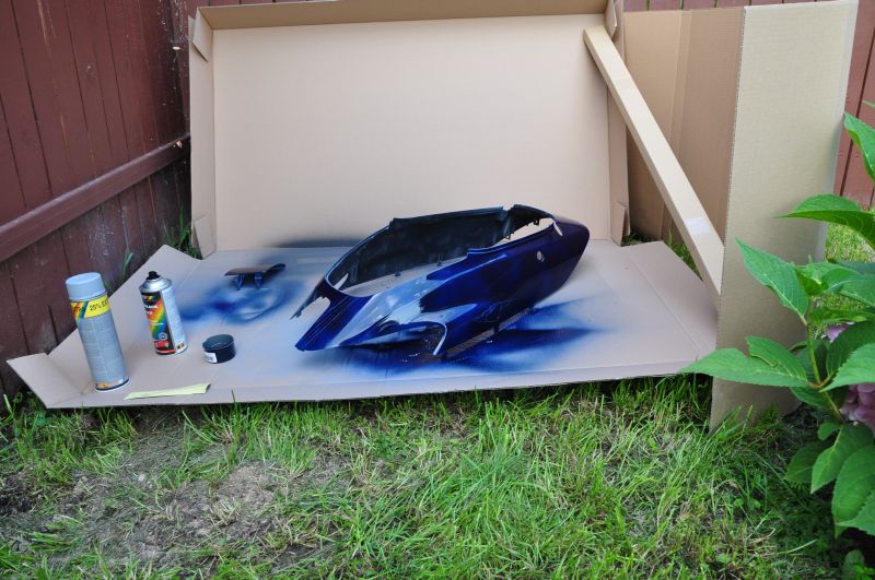 1. На лако-красочных материалах лучше не экономить, иначе увеличивается шанс на дефекты (потеки, неравномерность, плевки и т.д.). Сначала я покупал самую дешевую краску (отечественную), но потом понял, что это плохо. И учитывая предыдущие свои эксперименты, для ответственной работы купил те ЛКМ, которым доверяю: грунтовка Motip (1 баллон "+25%"), краска Motip (Черника металлик, 3 баллона), бесцветный лак Dupli Color (3 баллона "+50%" - лака много не бывает). Почему нужно брать дорогие материалы - потому что они нормально распыляются, дают равномерную струю и не плюются (впрочем, лак чуть-чуть плевался, но поверхность все равно не портил).