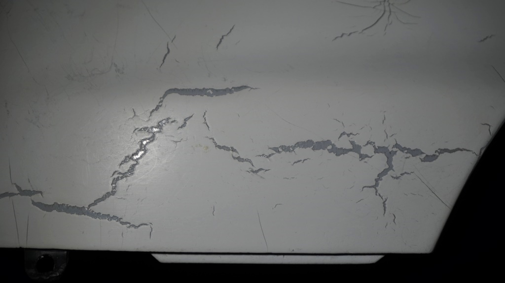 Один важный момент. Если на заводскую краску вполне можно класть краску из баллончиков (хоть алкидную, хоть акрил), то уже на эту краску в следующий раз (а он наступит быстро, так как краски эти не стойки к истиранию при мытье и протирке), перед окраской всё это удалять придётся. Иначе новая краска трескается, иногда даже грунтовка при нанесении "рвётся".(Фото) Несмотря на полноценную подготовку, с ошкуриванием, обезжириванием, обеспыливанием. (Всё делалось в СТО, самим его владельцем, поленившемся однако снять старый однокомпонентный акрил). Облицовки салона я красил оба раза сам, второй раз уже из двухкомпонентных баллончиков, и в первый же сезон красивая дорогая краска пошла местами мелкой сеткой трещин, во второй сезон - уже не местами. Теперь всё это снимать надо. Не представляю. Так что, ребята, баллончики - это дешёвая поездка в один конец, вернее, в тупик.