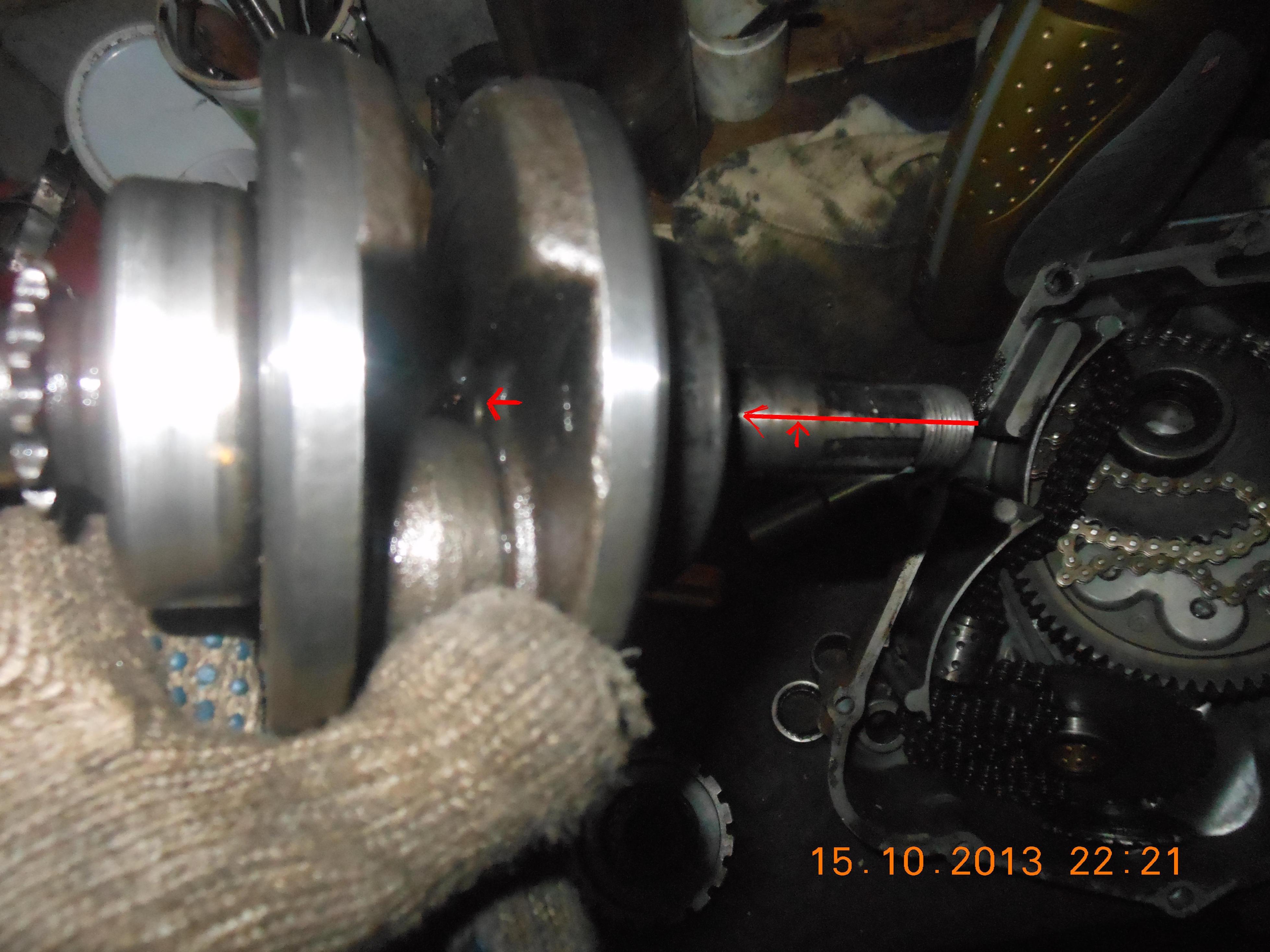 ...скорее всего, после всех твоих разборок и сборок, возникла проблема в системе смазки! На фото - типичное "маслянное голодание" и в результате "клин"! Смотри маслянный тракт от насоса - правой половины картера - правая крышка - механизм выжима сцепления и правая половина картера - цилиндр - головка! Где то там, собака зарыта.