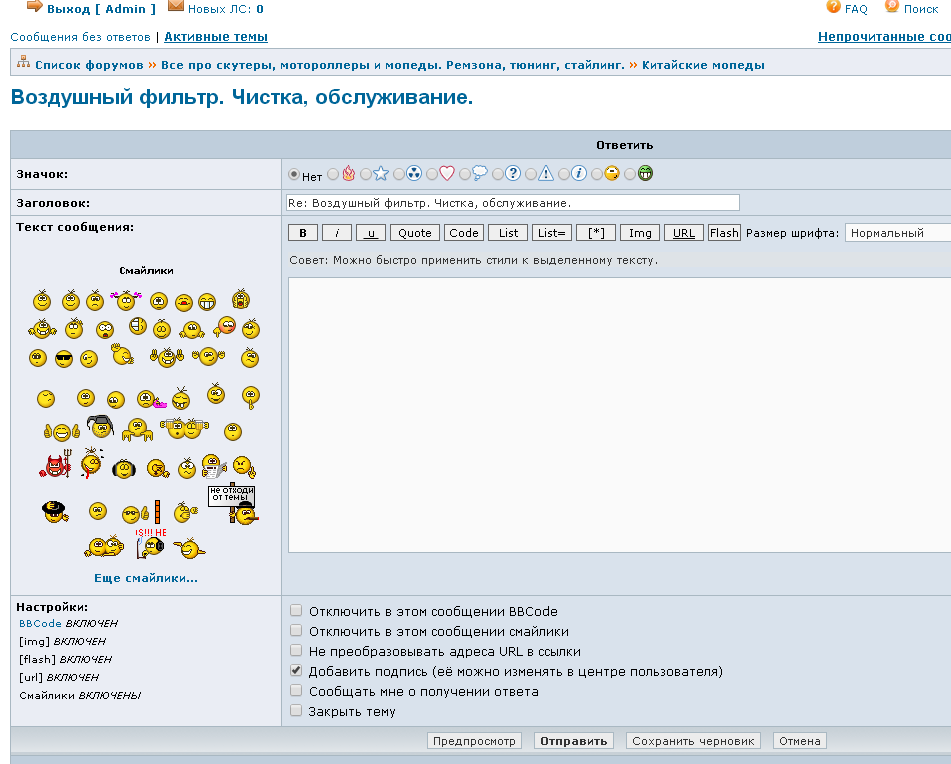 berdyanec писал(а): P.S. извиняюсь, что цитаты не от автора, не привык еще к этому форуму. Давайте я Вам помогу с адаптацией на форуме. Возможно еще кому-то будет полезно.Чтобы сформировать в одном сообщении ответы на несколько цитат и возможно от разных форумчан, нужно проделать ряд простых операций: 1) Нажмите на кнопку "Ответить" внизу блока с сообщениями. Вложение: 2)Откроется окно для формирования сообщения, Вложение: прокрутите немного окно вниз и вы увидите блок со всеми сообщениями в этой теме.Вложение: 3) Теперь просто выделите текст в нужном сообщении и нажмите кнопку "цитата". Такая кнопка есть у каждого сообщения. Вложение: Сразу после того, как примените это к выделенному тексту, можно писать свое сообщения. После написания собственного сообщения, обратно переходите в блок ниже, выделяете нужный текст, нажимаете кнопку "цитата" к этому тексту и переходите к написанию ответа к выделенной цитате. Таким образом в одном сообщении вы можете отвечать на вопросы нескольких форумчан или комментировать их ответы. Перед отправкой сообщения вы можете посмотреть как оно будет выглядеть, нажав на кнопку "Предпросмотр" слева от кнопки "Отправить". После отправки сообщения его также можно отредактировать, если есть такая необходимость, однако эта функция действует только в течении двух часов после публикации, после чего функция редактирования отправленного сообщения блокируется. |